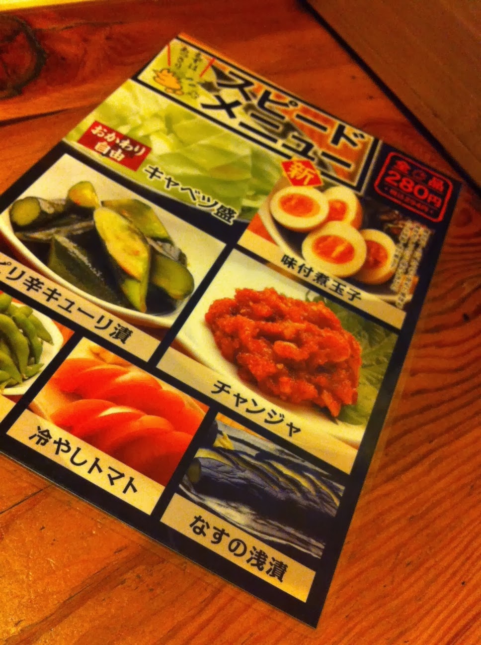 à peine assis (et affamé) je consulte la carte. Première observation pratique, les menus sont illustrés, pas besoin de parler japonais pour comprendre ce que l’on commande.