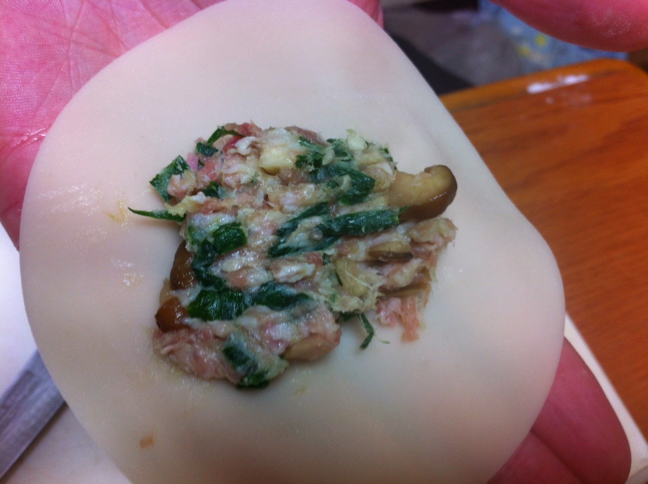 5. Préparez votre pâte et découpez la en petits cercles. Une fois le découpage effectué placez votre mélange au centre de votre gyoza.
