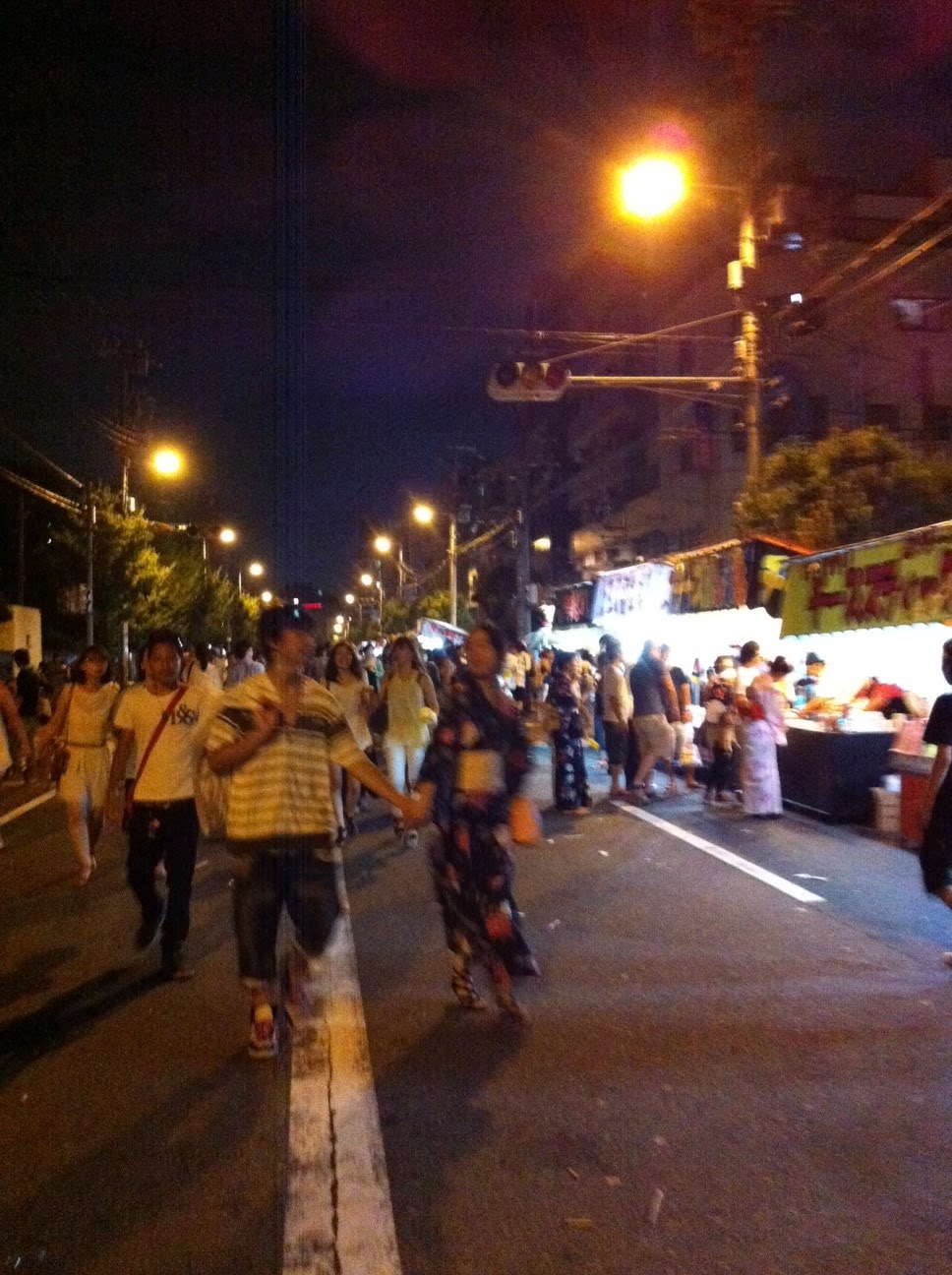 Des dizaines de stands bordent les rues, takoyaki, épi de mais flambé mais aussi des jeux et une vente de tortues domestiques. Petite visite du festival en photos: