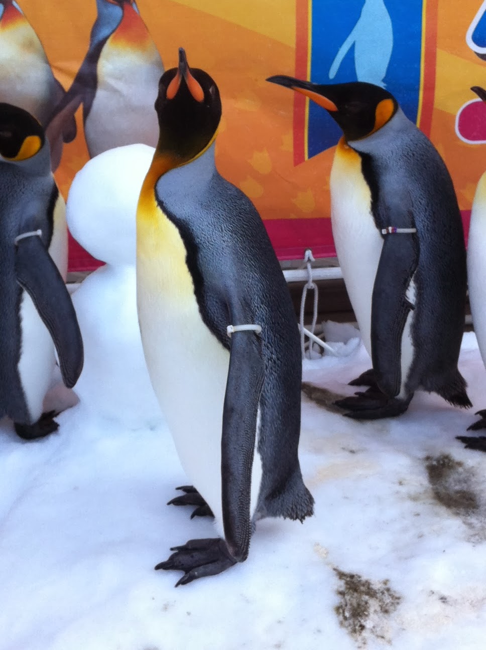 Un groupe de manchots. Leur taille est impressionnante. Pas loin d’un mètre.