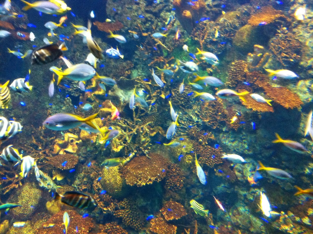 Un banc de poissons divers, je n’ai pus m’empêcher de surprendre un ou deux visiteurs japonais se léchant les lèvres en mimant compulsivement le mouvement des baguettes avec leurs mains.