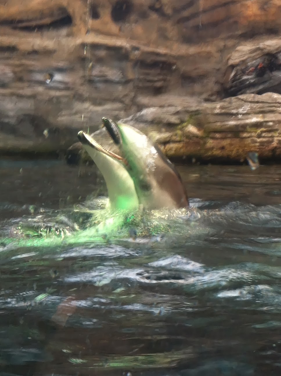 Un inévitable dauphin qui jouait avec une fontaine à eau.Question philosophique les mammifères marins et les poissons boivent ils de l’eau?